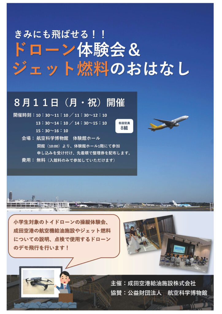 Narita Airport Fuel Facility (NAAF) will be holding a toy drone experience event, with priority given to elementary school students.